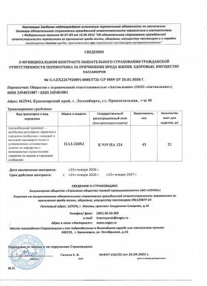 ООО «АвтоЛайн» ООО "Автопассаж" согласно Федерально-му закону № 67-ФЗ «Об обязательном страховании гражданской ответственности перевозчика за причинение вреда жизни, здоровью, имуществу пассажиров и о порядке возмещения такого вреда, причиненного при перевозке пассажиров метрополитеном» вступившему в силу с 1 января 2013 г., и Правилами обязательного страхования (стандартными) гражданской ответственности перевозчика за причинение вреда жизни, здоровью, имуществу пассажиров от 11 января 2013г. заключены договора обязательного страхования гражданской ответственности перевозчика за причинение вреда жизни, здоровью, имуществу пассажиров.
