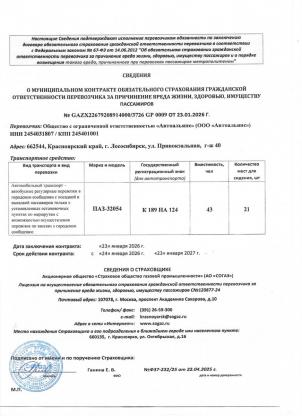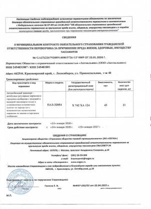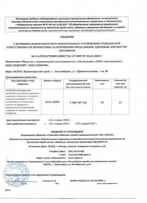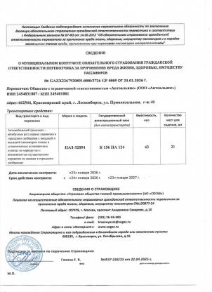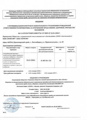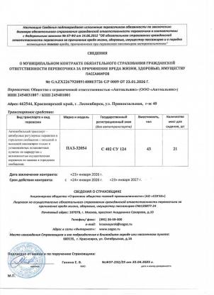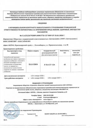 ООО «АвтоЛайн» ООО "Автопассаж" согласно Федерально-му закону № 67-ФЗ «Об обязательном страховании гражданской ответственности перевозчика за причинение вреда жизни, здоровью, имуществу пассажиров и о порядке возмещения такого вреда, причиненного при перевозке пассажиров метрополитеном» вступившему в силу с 1 января 2013 г., и Правилами обязательного страхования (стандартными) гражданской ответственности перевозчика за причинение вреда жизни, здоровью, имуществу пассажиров от 11 января 2013г. заключены договора обязательного страхования гражданской ответственности перевозчика за причинение вреда жизни, здоровью, имуществу пассажиров.